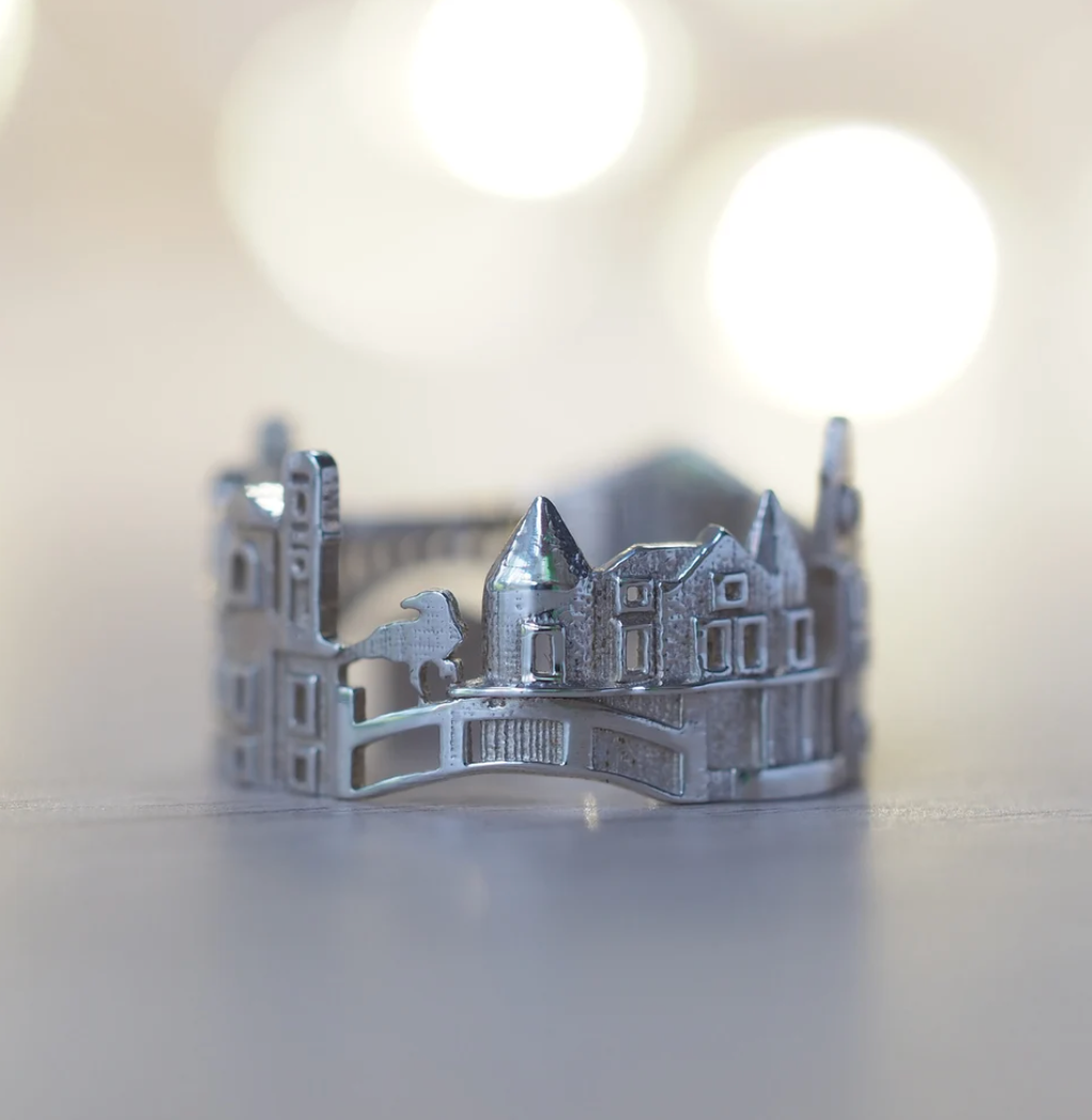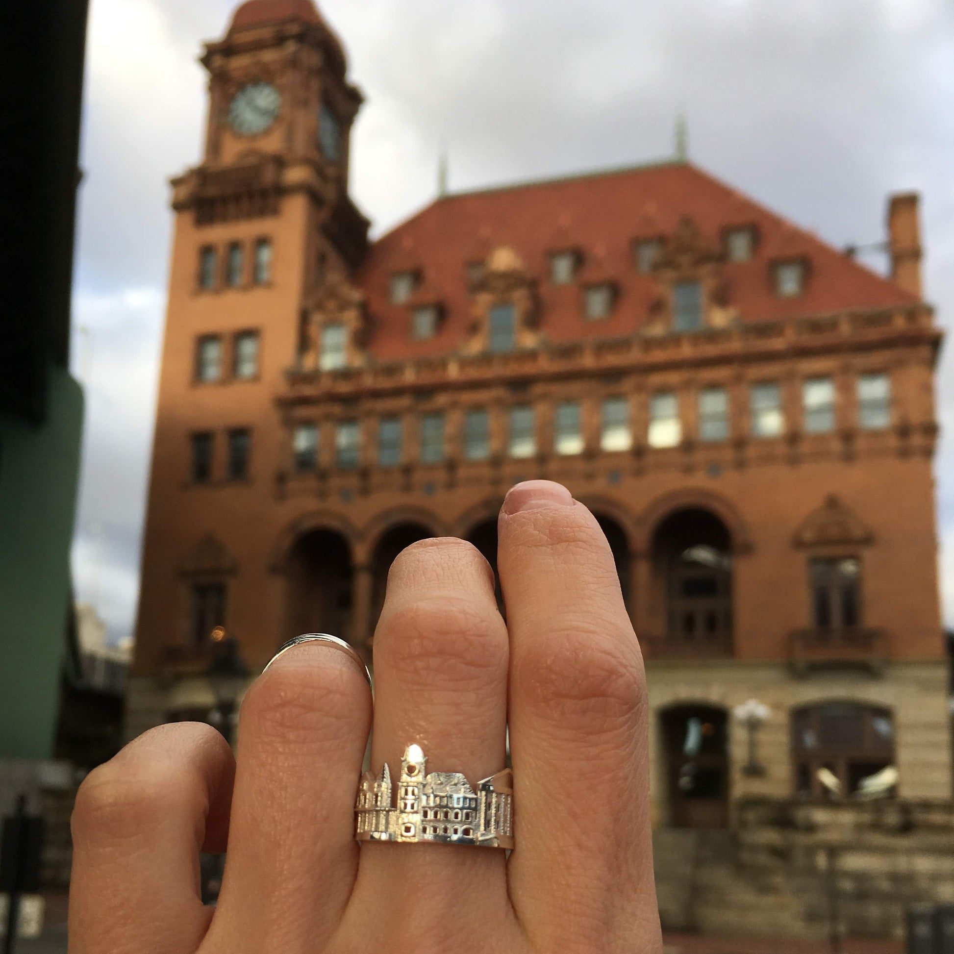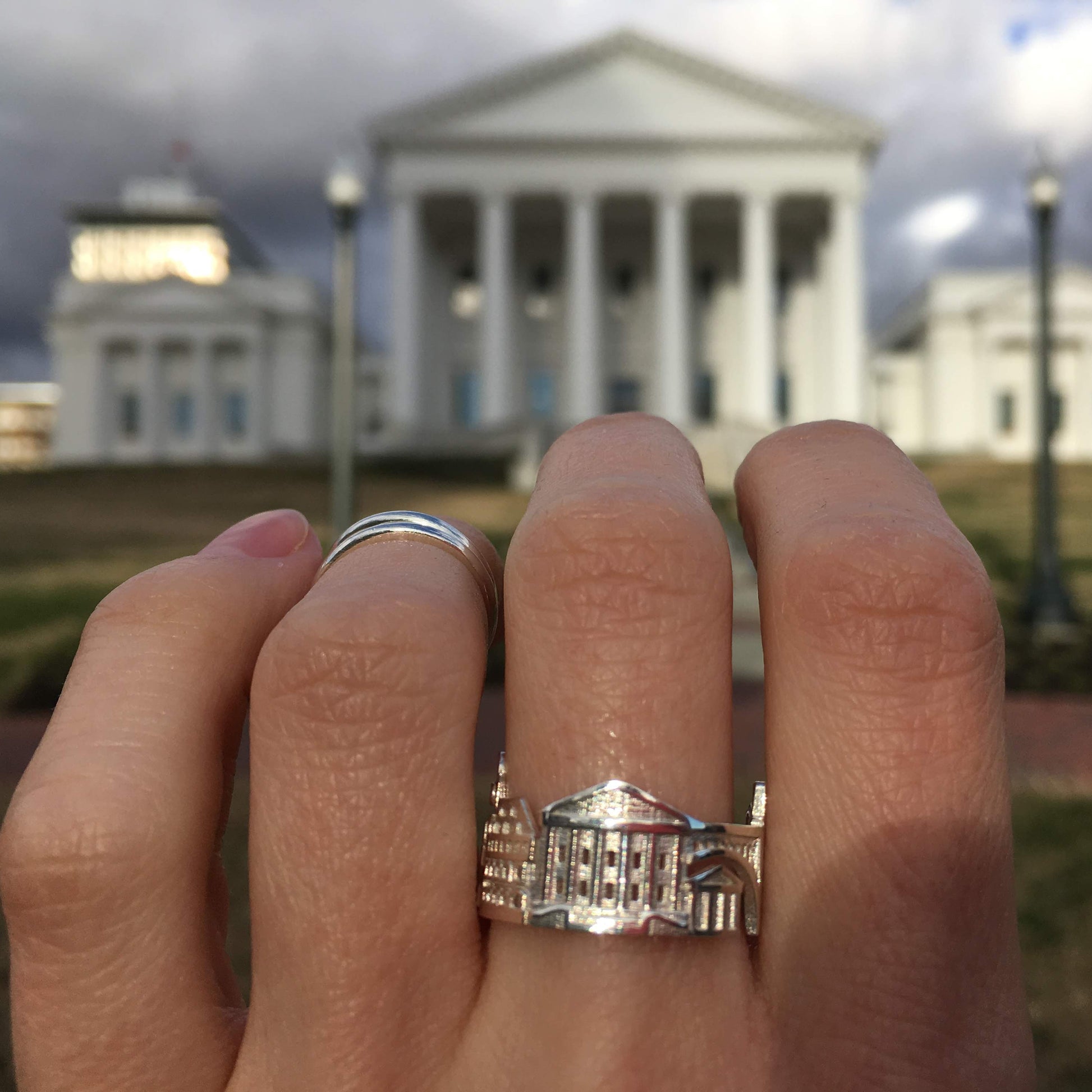 Unique Richmond, VA ring highlights following remarkable places: Maymont Garden, Jefferson Hotel, Main Street Station, Virginia Capitol, Railway Bridge and even tiny raven as a memory of Allan Edgar Poe.